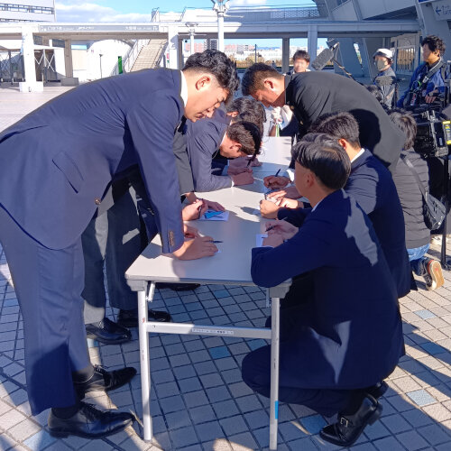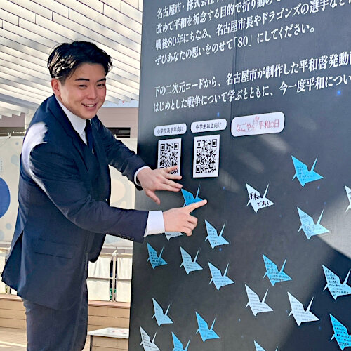 本日12月22日、オープンデッキ2ゲート前に設置中の平和祈念モニュメント『光の折り鶴』背景ボードにあるメッセージの一部貼り替えを行い、中日ドラゴンズ新入団選手分が追加されました(中西投手のみ12月9日に追加済み)。