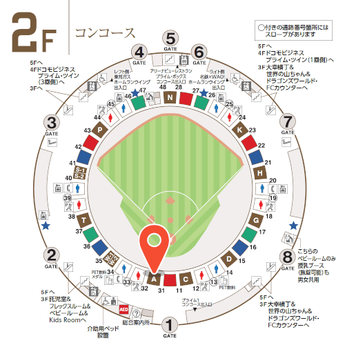 【場所】2F 1番ゲート付近 コンコース売店 本塁側