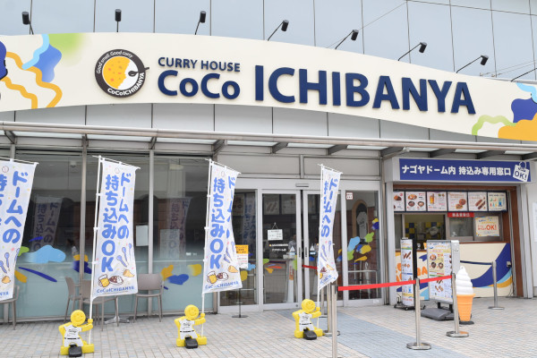 場外にあるので入場前に食事ができるほか、ドーム内への持ち込みも可能。温かいカレーライスを食べながら試合観戦できます。